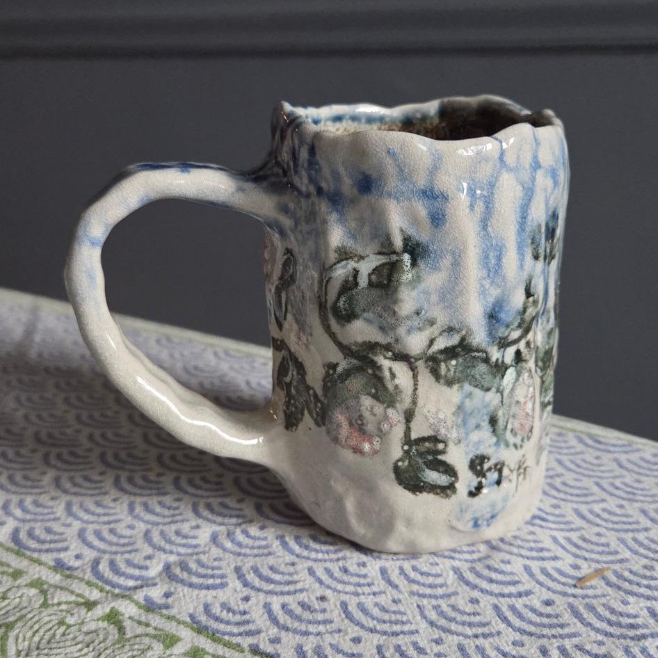 Coil-built Soda-Fired Mug - Strawberry Season i