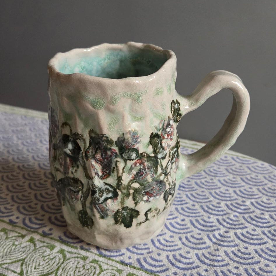 Coil-built Soda-Fired Mug - Strawberry Season v