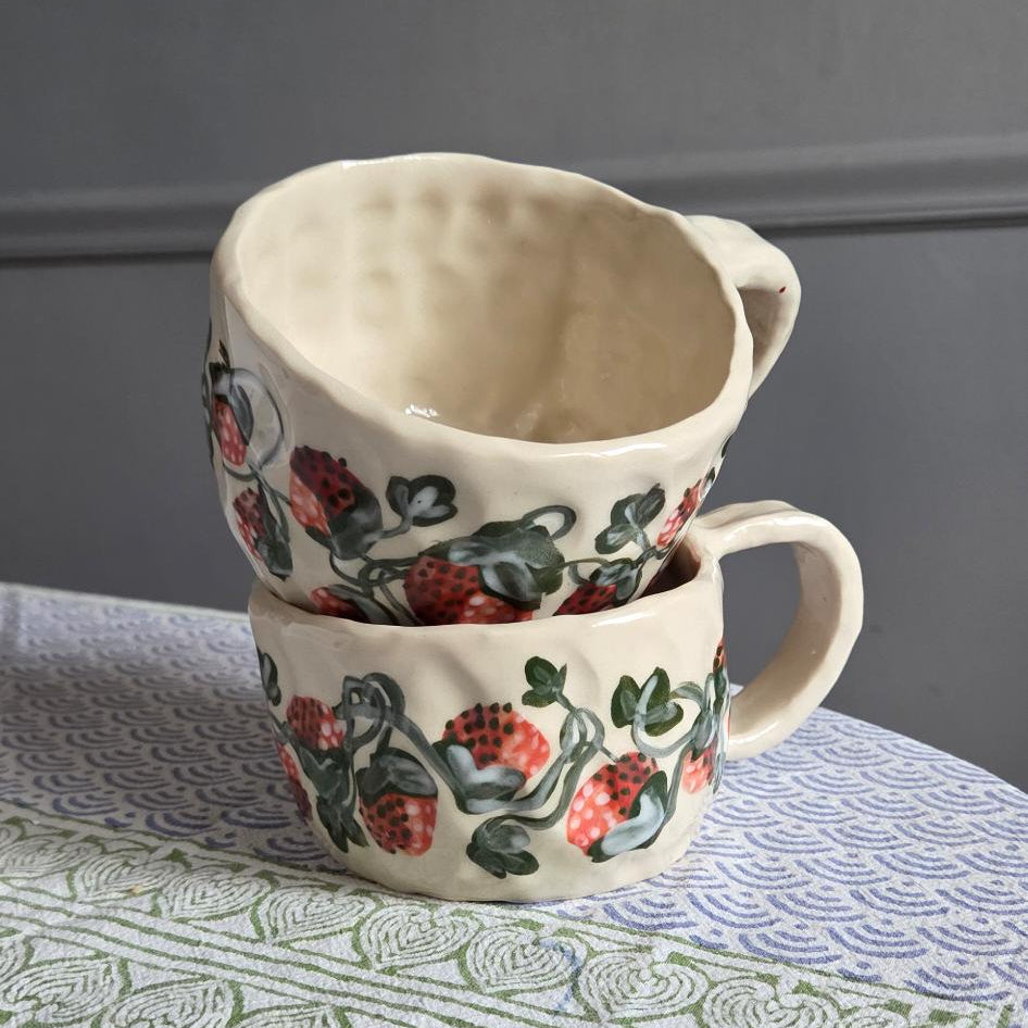 One of a kind slab-built, hand-pinched stoneware, hand-painted with underglaze and dipped in food safe glaze.